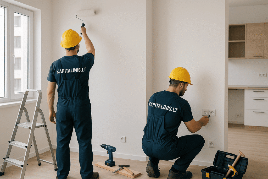 Galutinis sukomplektavimas: durų montavimas, vonios kambario paruošimas, sujungimų atlikimas, silikonavimas, smulkūs apdailos darbai – kad būstas būtų pasirengęs gyventi.